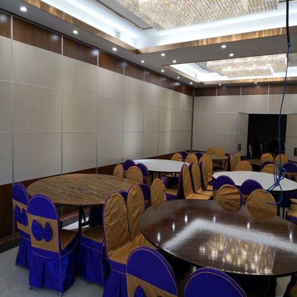2. About the movable partition walls,they are sound proofing,sliding and operable.When you use them,they can be divided a big space into many small rooms,and when you do not use them,they can be parked at one site.